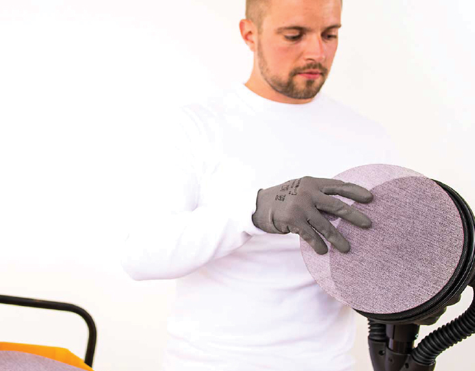 אחיזה ארגונומית וגמישות ראש (180 מעלות תנועה) מאפשרים עבודה יעילה מדוייקת ונוחה לאורך זמן צינור שאיבה כפול ואקסנטריות של של 5 ממ פלטה 225 ממ